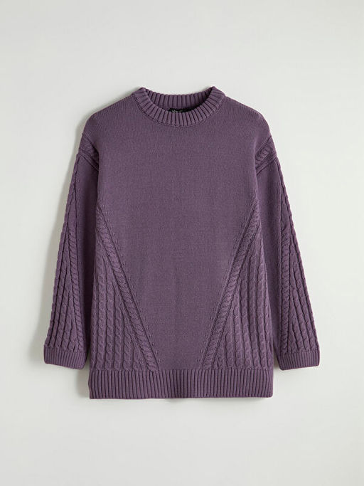 • Bisiklet Yaka Kendinden Desenli Kad?n Triko Tunik