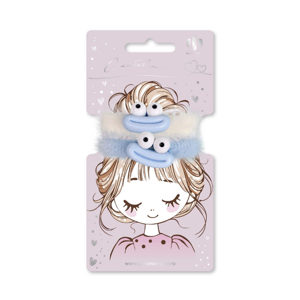 Набор резинок для волос арт. 71824 / 10 ПУШИСТЫЕ МОНСТРИКИ (в наборе: 2шт., б/р, вулканизированная резина, полиэстер, акрил, цвет: голубой, белый, подложка из мелованного картона + ПЭТ-пакет с европодвесом)