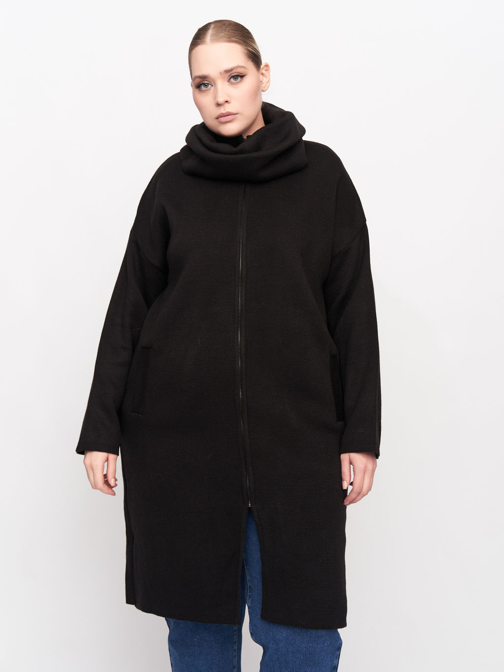 Описание товара Женское черное вязаное пальто больших размеров плюс сайз.