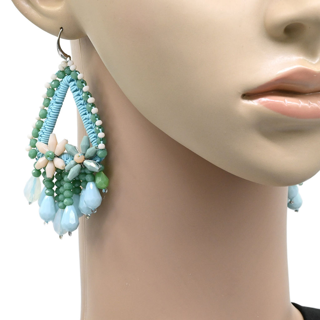 Серьги ручной работы с цирконами в оплетении цв.аквамарин