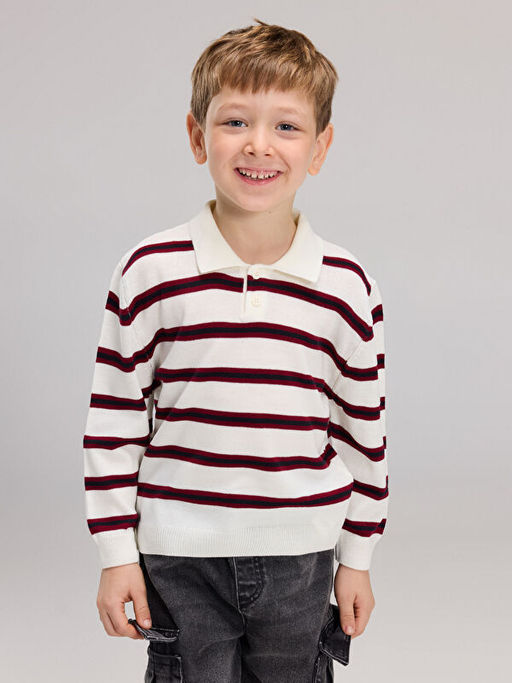 • Polo Yaka ?izgili Erkek ?ocuk Triko Kazak