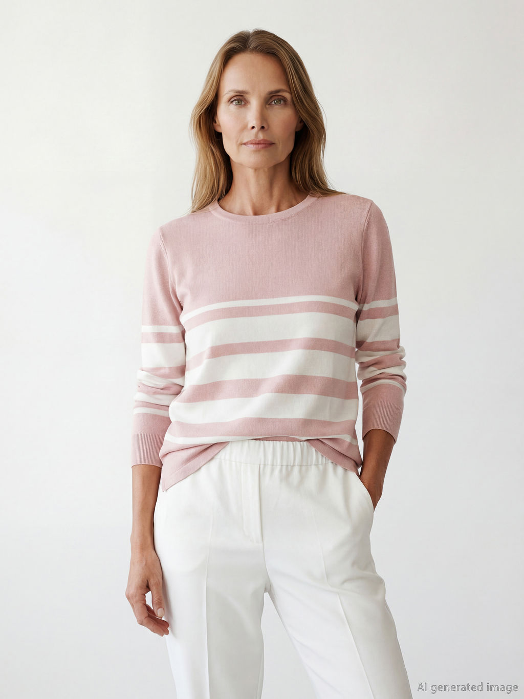 Bisiklet Yaka ?izgili Kad?n Triko Kazak