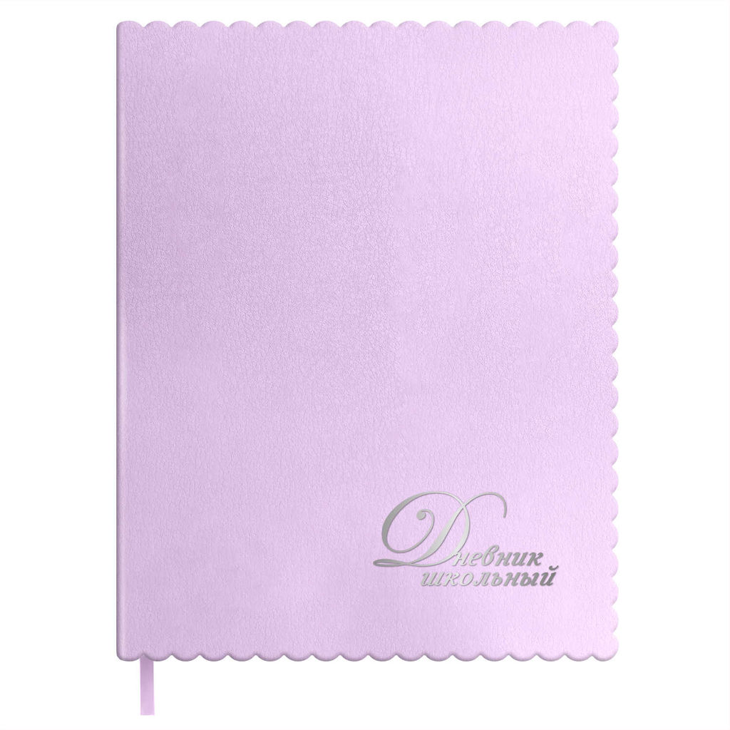 Дневник школьный арт. 72550 / 15 ФИГУРНЫЕ КРАЯ СИРЕНЕВЫЙ (кожзам: А5+; мягкий переплёт, материал обложки: искусственная кожа "Бьянчини"; декор: тиснение фольгой, фигурная вырубка по краю; способ крепления блока: ниткошвейный; вн. блок: 48 л., белый офсет 80 г/м?, печать в одну краску, справочный материал: универсальная шпаргалка; отделка среза: фольгирование; закладка: одно ляссе; форзац: печать пантоном; индивидуальная упаковка: промостикер + ПЭТ-пакет)