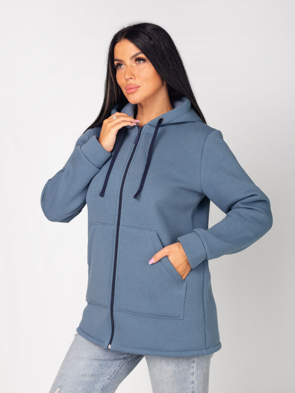 Толстовка женская футер начес 3-х нитка "РОКСАНА" ИНДИГО с ДЕФЕКТОМ