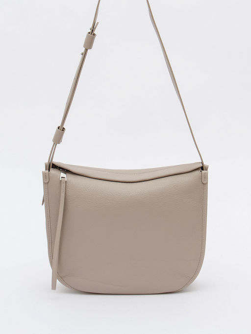 Вместительная сумка, выполнена из натуральной кожи.  Дополнена серебристой фурнитурой. Данная модель закрывается на молнию. Каркас полужесткий.  Носится на плече. В комплекте имеется встроенный ремень с регулировкой длины.