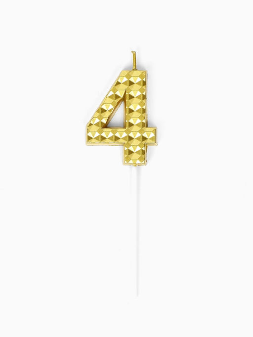 Цена за 3 шт. Свеча для торта «Элемент», цифра 4, золотая