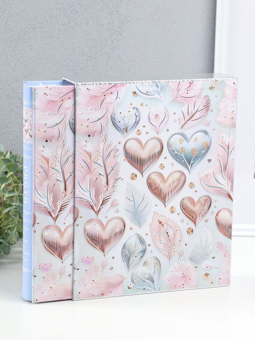 Фотоальбом на 200 фото 13х18 см "Сердца и листья" серо-розовый, в коробке 5,5х23,5х29,5 см 1096272