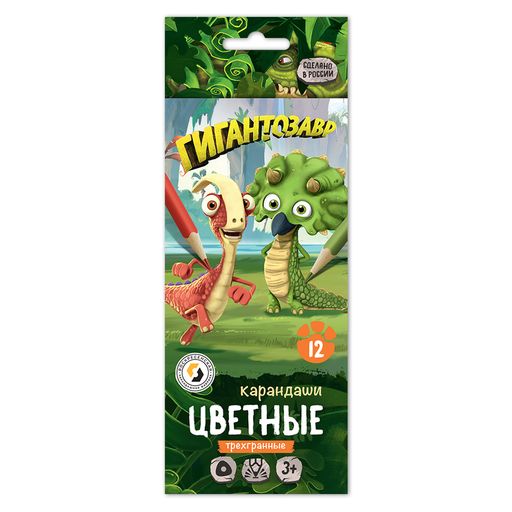 • ВКФ Гигантозавр Набор цветных карандашей GGZ-CP-6012 заточенный 8 х 12 цв