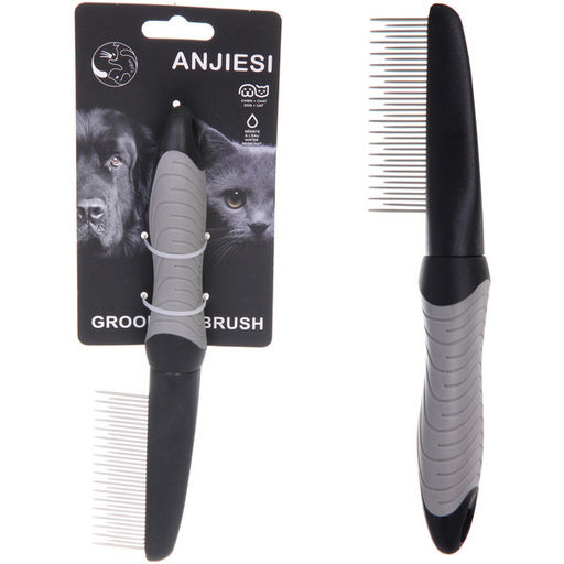 • Цена за 2 шт. Расческа - гребень для животных "ПРЕМИУМ - МОЙ БРО", прорезиненная ручка, зубья разной длины, цвет серый/черный, 5*23см