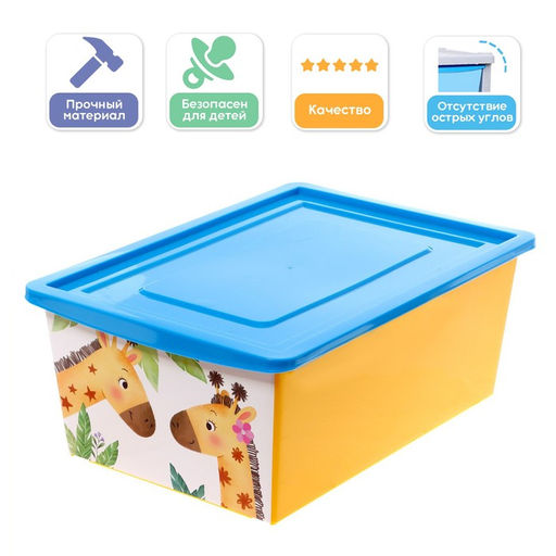 Универсальный ящик послужит хорошим украшением для детской комнаты. Подойдёт для хранения мелких игрушек.Красивые рисунки привлекают внимание детей. Ребёнок с удовольствием будет собирать свои игрушки в яркую коробочку. Ширина, см: 36.5. Высота, см: 20.5. Глубина, см: 51.5. Объём, л: 30. Рисунок: Да. Крышка: Да. Колёса/ролики: Нет. Наша разработка: Да.