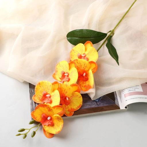 • Цена за 2 шт. Цветы искусственные «Орхидея фаленопсис» премиум, 7×55 см, жёлтые