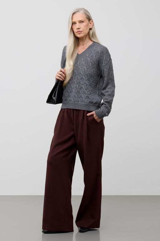 Мягкий вязаный джемпер с V-вырезом из премиальной пряжи, созданный с использованием инновационной технологии смешанного волокна. Деликатное сочетание шерсти и акрила обеспечивает непревзойденный комфорт: изделие нежно облегает фигуру, гарантирует мягкость прикосновения и сохраняет безупречную форму..Состав: 50% шерсть, 50% акрил