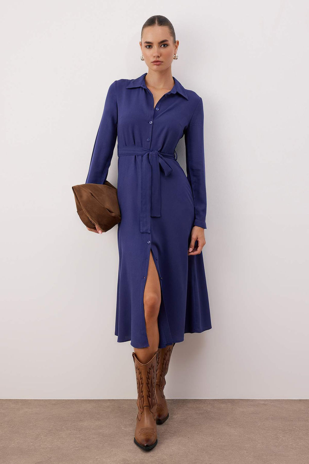 Lacivert Duz Kusakl? Midi Dokuma Elbise TWOAW25EL00436