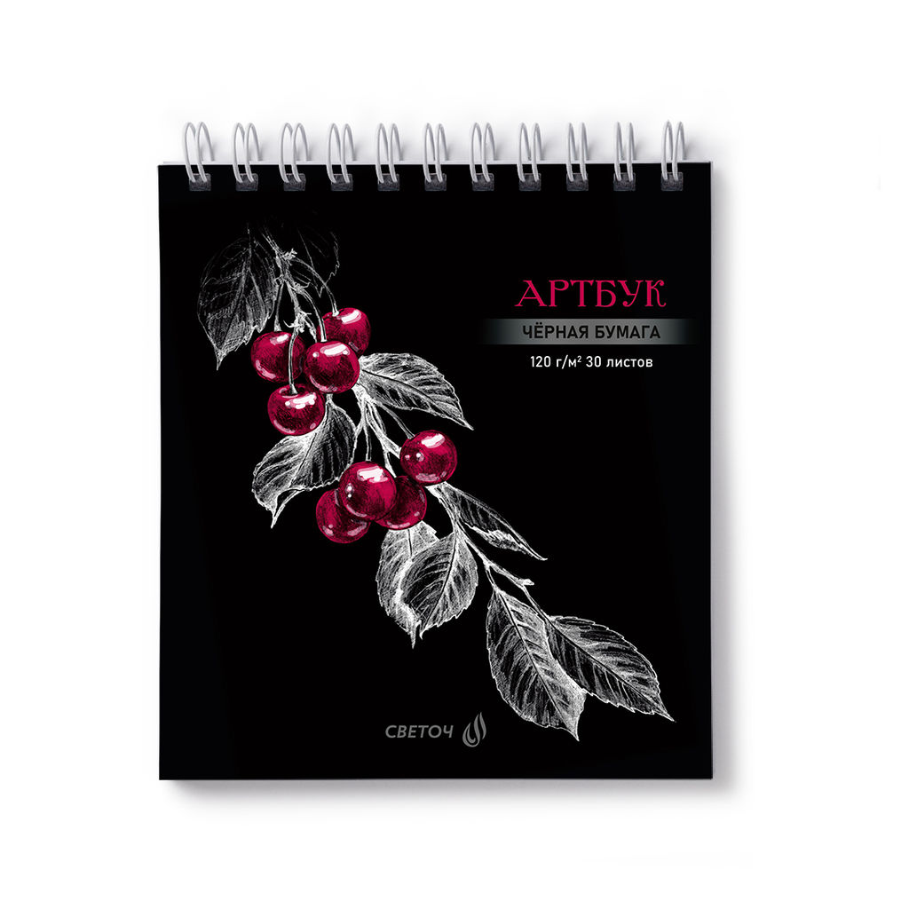 Светоч А306 Артбук (Скетчбук), блок чёрный, жесткая подложка, 120 г/м2 166*175 мм на гребне 30 л. 2 шт. Вишня 01939