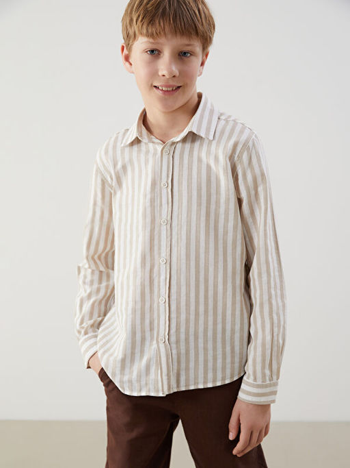 ?izgili Keten Kar???ml? Erkek ?ocuk G?mlek