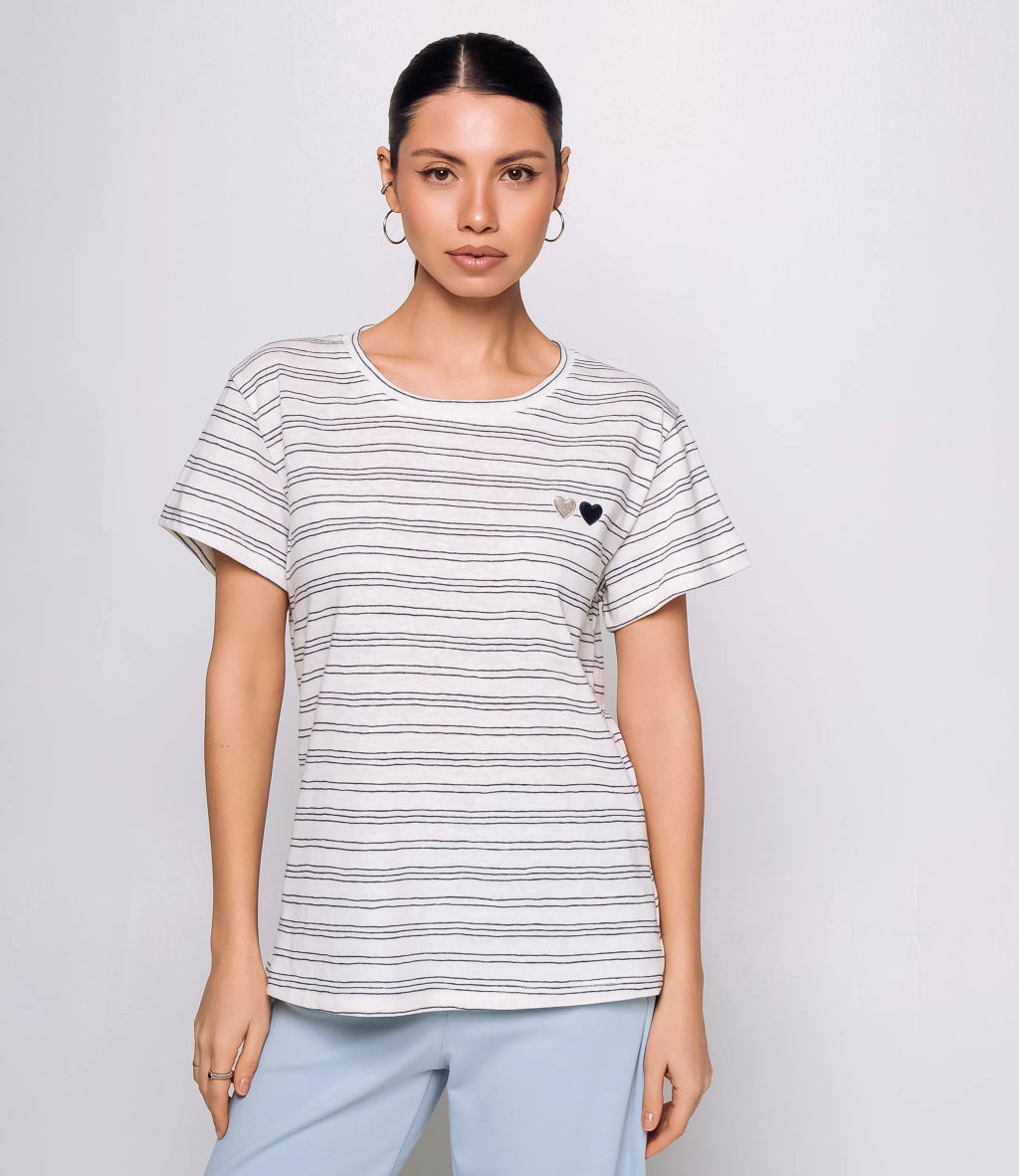 Футболка - это вещь, которая выделяет и подчеркивает уникальность каждой представительницы прекрасного пола. Футболка выполнена из мягкой однотонной основы с тонкими горизонтальными полосками, прямого свободного кроя, с круглым вырезом горловины. На левой стороне груди небольшая отделка в виде двух миниатюрных вышитых сердечек, расположенных рядом друг с другом; сердечки плоские, без объёма. Изделие из 65% хлопка и 35% полиэстера сохранит свою первоначальную привлекательность даже после многих стирок. Вы будете его носить с большим удовольствием. Обратите внимание на цвет - он является насыщенным и полностью соответствует фотографии на сайте. Чтобы вы не сомневались в размере, мы предоставили на странице таблицу. Воспользовавшись ею, вы сможете сами сделать мерки и убедиться. Установленная нами цена является доступной и адекватной. Подарите себе удовольствие быть элегантной и неповторимой с нашей футболкой! -- Характеристики -- Цвет: белый, cиний Пол: Женский Страна производитель: Китай Сезон: Всесезонный Материал: Хлопок, Полиэстер
