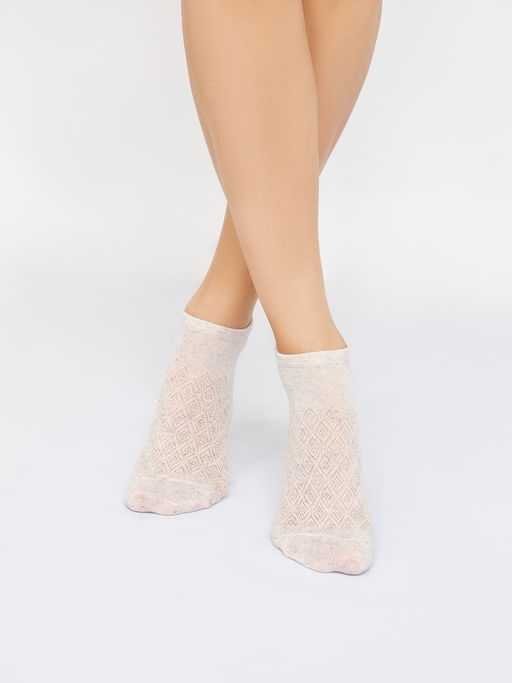 рис.1978 Женский носок суперкороткий из пряжи хлопок/лен с ажурным рисунком.­