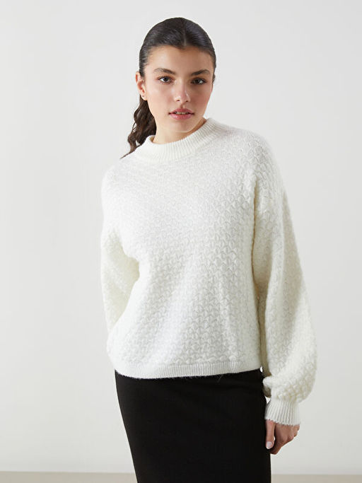 • Bisiklet Yaka Kendinden Desenli Kad?n Triko Kazak