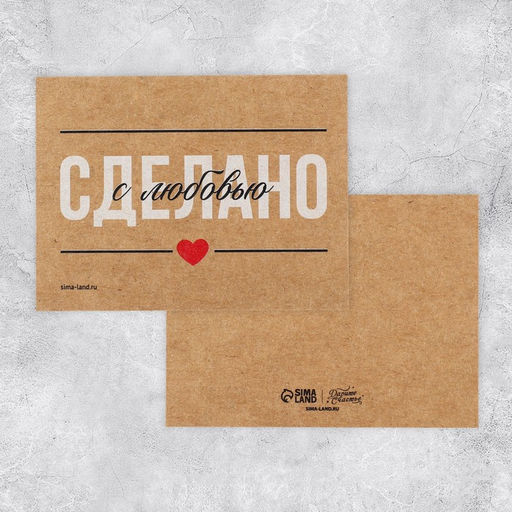 • Цена за 5 шт. Открытка-мини для бизнеса «Сделано с любовью», крафт, 8 х 6 см