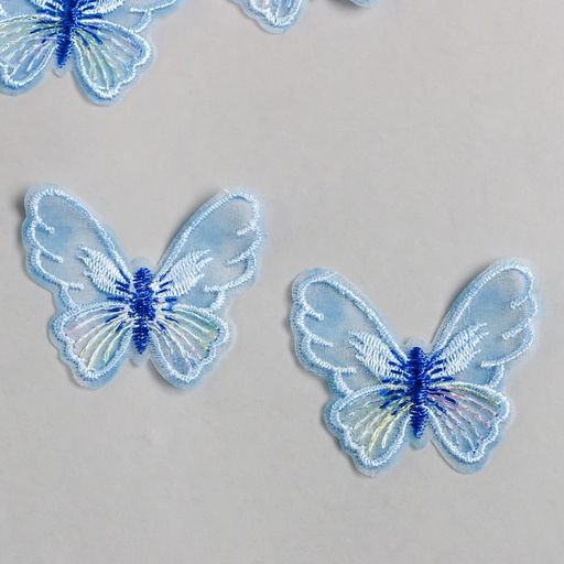 • Цена за 10 шт. Декор для творчества текстиль вышивка Бабочка голубая, 4.7?5.5 см
