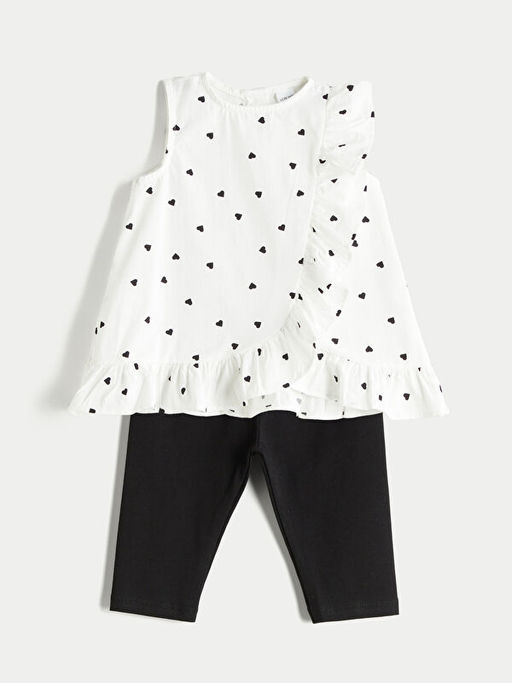 • Bisiklet Yaka Bask?l? K?z Bebek Bluz ve Tayt 2li