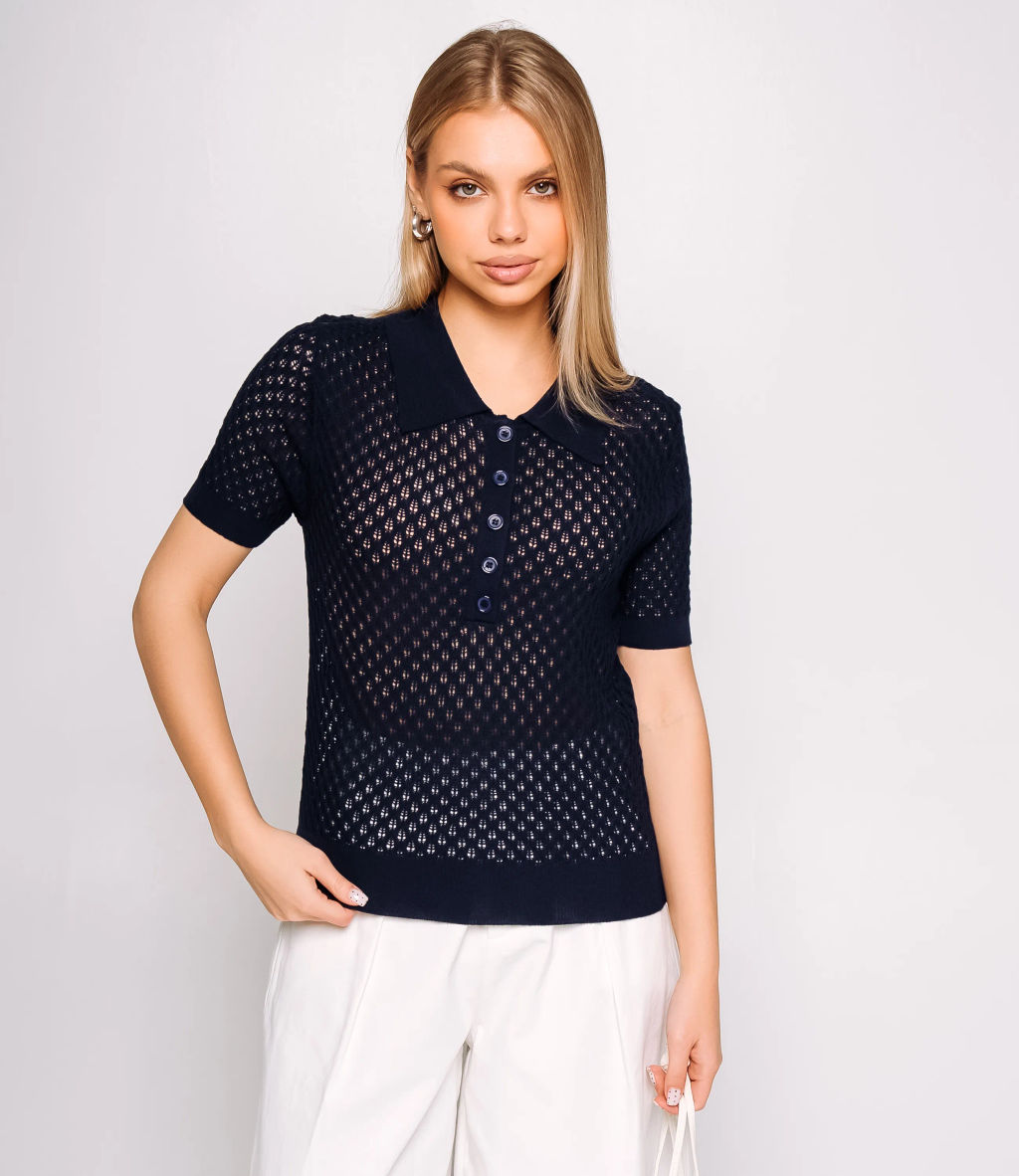 Футболка - это вещь, которая выделяет и подчеркивает уникальность каждой представительницы прекрасного пола. Тонкая ажурная трикотажная футболка приталенного силуэта с мягким отложным воротником и короткими рукавами средней длины, выполненная в мелкий геометрический открытый узор с прозрачной фактурой, имеет вертикальную планку с несколькими застёгивающимися пуговицами по линии груди. Изделие из 65% хлопок и 35% полиэстера сохранит свою первоначальную привлекательность даже после многих стирок. Вы будете его носить с большим удовольствием. Обратите внимание на цвет - он является насыщенным и полностью соответствует фотографии на сайте. Чтобы вы не сомневались в размере, мы предоставили на странице таблицу. Воспользовавшись ею, вы сможете сами сделать мерки и убедиться. Установленная нами цена является доступной и адекватной. Подарите себе удовольствие быть элегантной и неповторимой с нашей футболкой! -- Характеристики -- Цвет: темно-синий Пол: Женский Страна производитель: Китай Сезон: Всесезонный Материал: Хлопок, Полиэстер