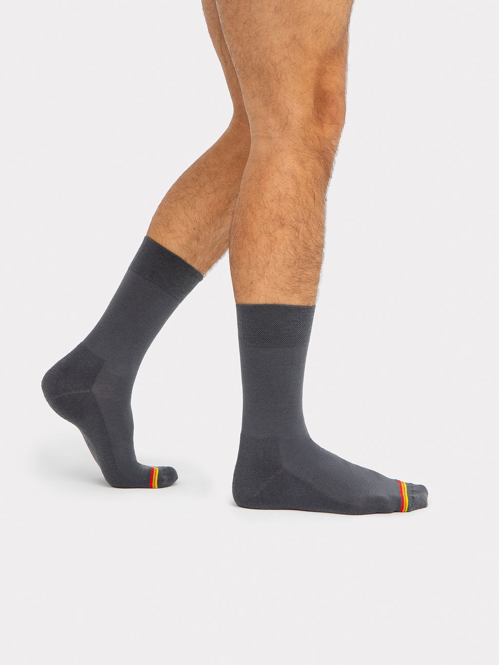 • Цена за 5 пар! Высокие мужские носки "термо" темно-серого цвета с желтой и красной полоской т.серый 602T-006