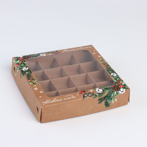 • Коробка под 16 конфет «Новогодние моменты», 18.5×18.5×3.5 см