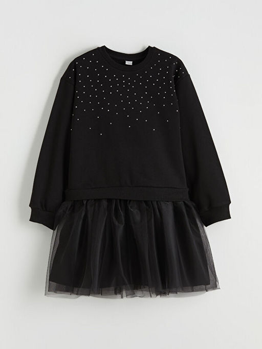 Bisiklet Yaka Ta?l? K?z ?ocuk T?t? Elbise