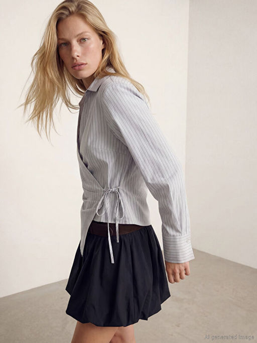 • Kruvaze Yaka ?izgili Kad?n G?mlek