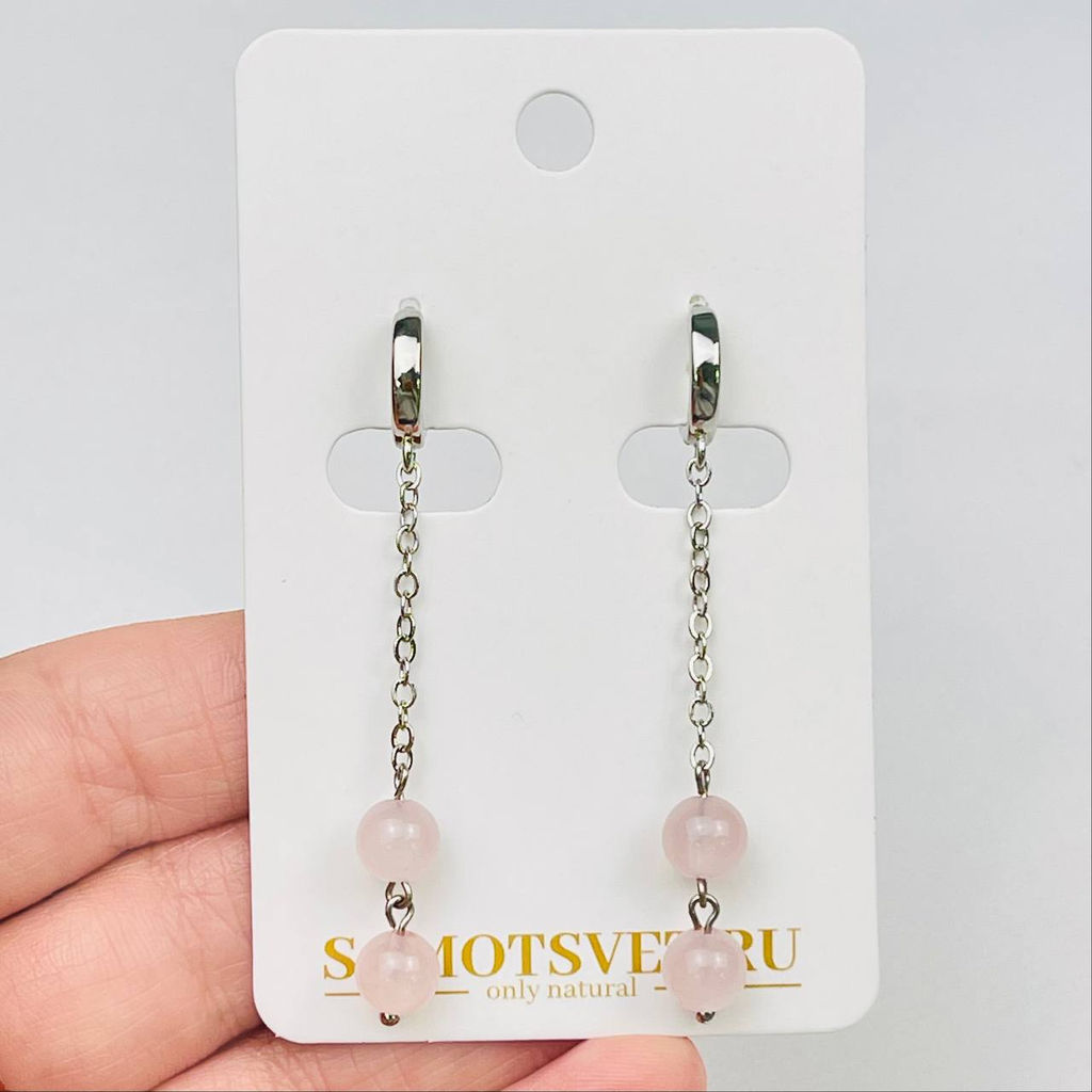 • Серьги на цепочке из мадагаскарского Розового кварца