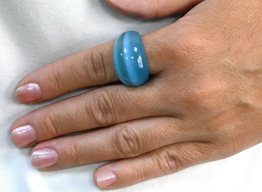 Крупное кольцо - это стильное украшение привлекающее внимание к руке его обладательницы. Название камень получил из-за игры световой полосы, схожей с зрачком кошки. Несмотря на крупные габариты, кольцо приятно сидит на пальце.