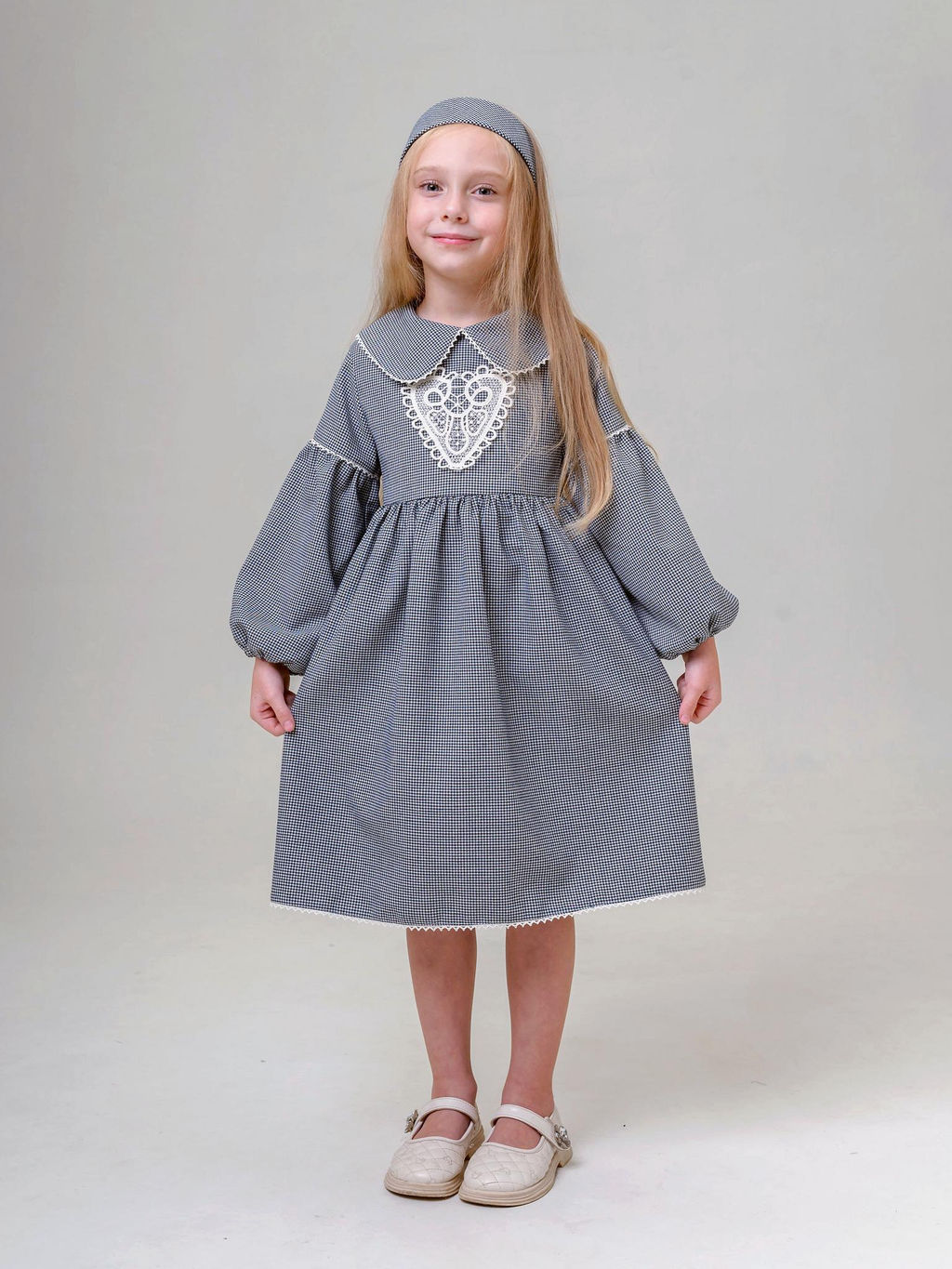 Милое изящное платье из хлопка и пэ идеально смотрится как на малышках, так и на девочках подросткового возраста.За счет фактуры материала платье практически не мнется. Платье свободного силуэта. Интересный крой рукава. Чуть завышенная линия талии. Винтажные хлопковые кружева и кружевная  аппликация придают платью эксклюзивный вид . Вшитый воротничок,с отделкой кружевом.Сочетание нежного материала, натуральных  кружав и элегантного кроя. Сзади застежка молния.