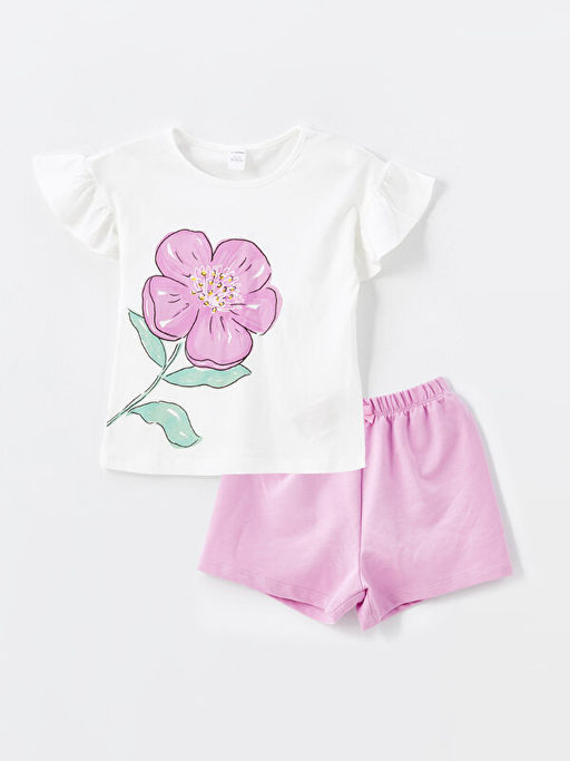 Bisiklet Yaka K?sa Kollu ?i?ekli K?z Bebek Ti??rt ve ?ort Tak?m 2li Tak?m