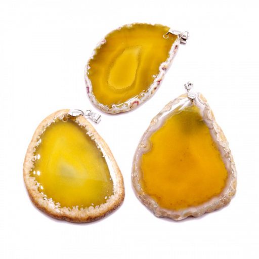 Подвеска срез камня Желтый агат, полированный с обеих сторон. Срез желтого агата это яркое, эффектное и самобытное изделие, отличается уникальным узором. Агат обладает особой слоистостью, которая визуально создаёт на срезе камня необычные рисунки и полосы. Не существует двух одинаковых срезов, благодаря чему Вы можете купить украшение, не имеющее аналогов. Желтый агат часто применяется при изготовлении амулетов, талисманов и оберегов. Основное свойство этого минерала вбирать в себя негативную энергию извне, благодаря чему его можно использовать в качестве оберега от внешних магических воздействий. Этому камню покровительствуют Меркурий, Сатурн и Венера. Это дает ему особую энергию, способную успокоить человека и позволить ему обрести самообладание. Этот камень поможет людям, которые постоянно подвергаются различным стрессам, он нормализует внутреннее эмоциональное состояние и уравновешивает психику. Также минерал притягивает удачу, финансовый успех и развивает внутренний стержень. В магазине Аланкара можно недорого купить оптом и в розницу кулоны срезы из желтого агата, а также другие украшения с натуральными камнями. Бижутерия из натуральных камней придаст внешности каждой женщины неповторимую яркость и индивидуальность. Мы отобрали для вас самые красивые натуральные и цветные агатовые срезы. Вам остаётся только выбрать срез, оформить заказ и получить уникальный подарок! Аланкара подарки и сувениры оптом и в розницу по доступным ценам. #натуральныекамни #украшенияоптом #бижутерияоптом