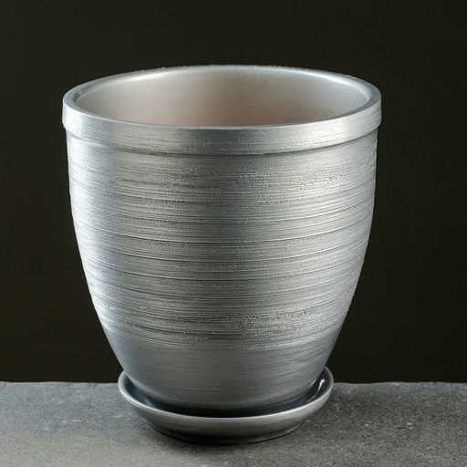 Горшок цветочный с поддоном 2,4л, серый кремика, "Серебро" (М)
