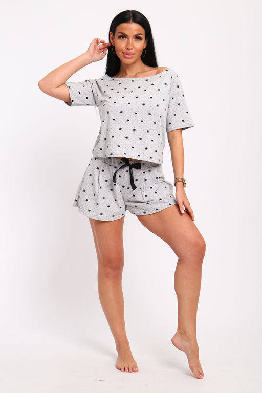 Пижама женская футболка и шорты. Футболка свободного кроя с широким вырезом горловины, рукав короткий на спущенном плече.