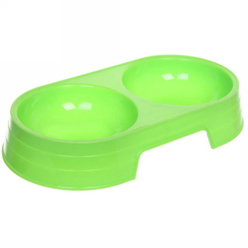 Двойная миска для домашних животных подойдет для собак, кошек или других питомцев. Миска устойчива и не скользит по полу. Подойдет для сухих и влажных кормов, для воды, отличное решение для того, чтобы обеспечить одного питомца едой и водой. Выполнена из высококачественного пластика.­