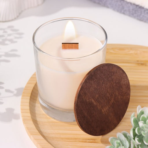 Свеча в стакане с деревянным фитилем и крышкой «Лесная малина», из соевого воска, 110 г