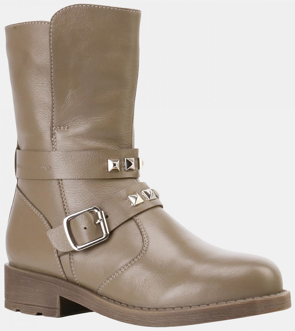 Полусапожки для девочек оливкового цвета - практичное решение для повседневной носки. Данная модель выполнена из натуральной кожи. Пара украшена декоративными ремешками и фурнитурой в виде шипов. Сапоги удобно застегиваются на молнию. Подкладка и стелька из натурального меха защитят ноги от суровых зимних холодов.