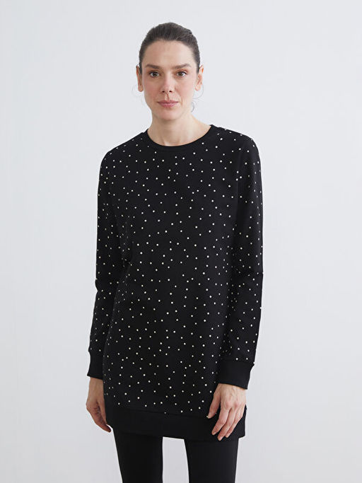 Bisiklet Yaka Puantiyeli Kad?n Sweatshirt Tunik