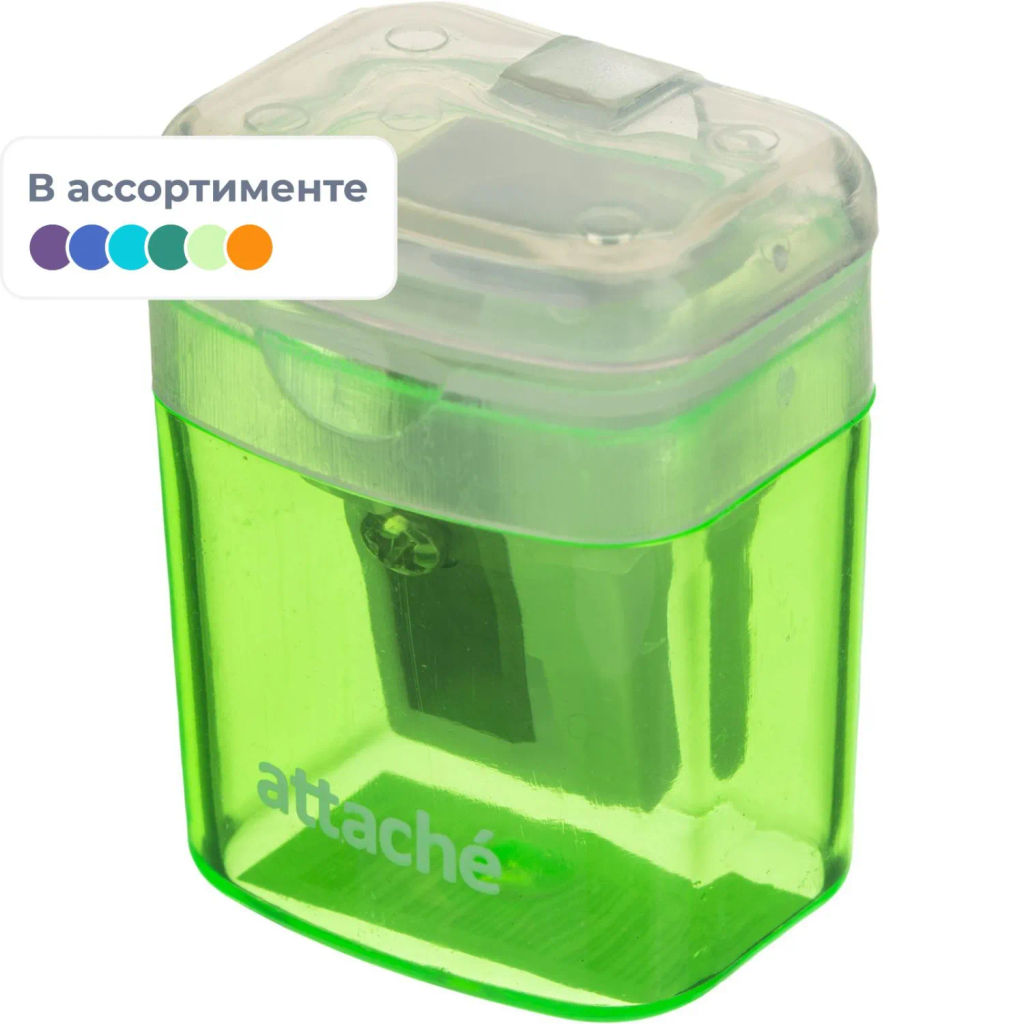• Точилка Attache Economy на 1 отвт, прямоуг, с цветным контейнером, ассорти