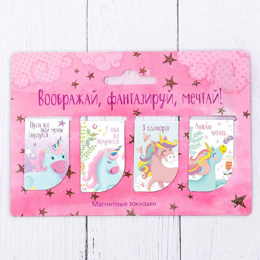 • Закладки магнитные для книг, 4 шт. Воображай, фантазируй, мечтай