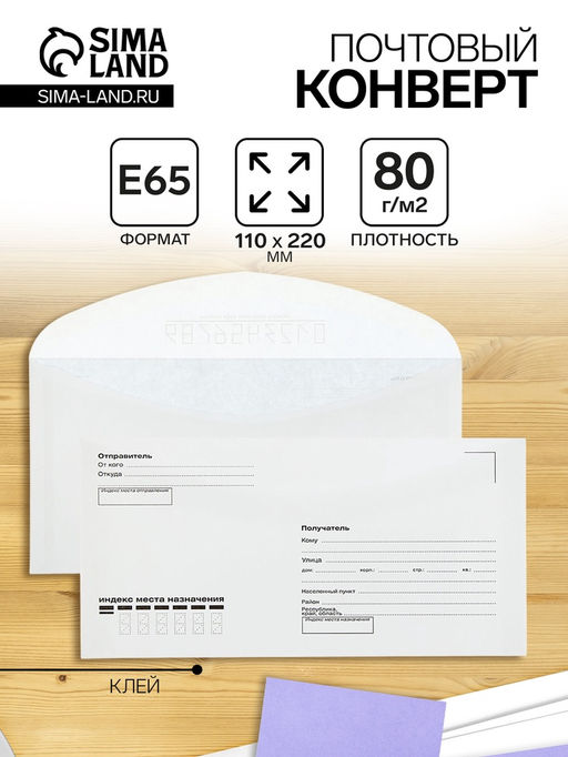 Формат: Е65. Плотность, г/м: 80. Европодвес: Нет. Особенности: Однотонные. Тип: Почтовый конверт. Температурное ограничение транспортировки: Нет. Тип заклеивания: Клей. Запечатка: Нет. Подсказ (кому-куда): Да. Формат клапана: Автомат. Реестр Минпромторга: Нет.