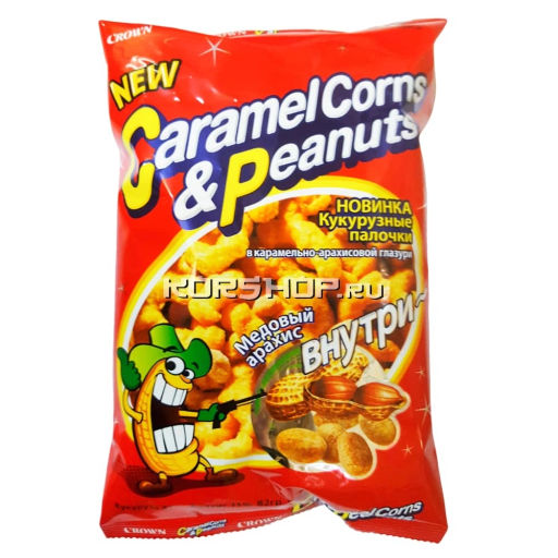 • Кукурузные палочки "Карамель и арахис"/Caramel corn and peanuts CROWN, Корея, 72 г Акция