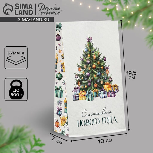 • Цена за 10 шт. Пакет подарочный без ручек «Счастливого Нового года», 10×19.5×7 см