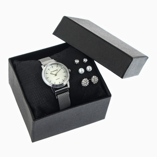 • Женский подарочный набор Bolingdun 4 в 1: наручные часы, серьги, d=2.8 см