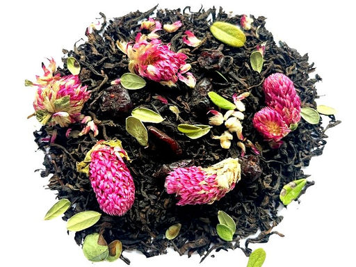 Купаж крупнолистового Шу Пуэра 5-летней выдержки из провинции Юньнань, ягод ежевики, цветов клевера и листочков брусники. С ароматом лесных ягод.