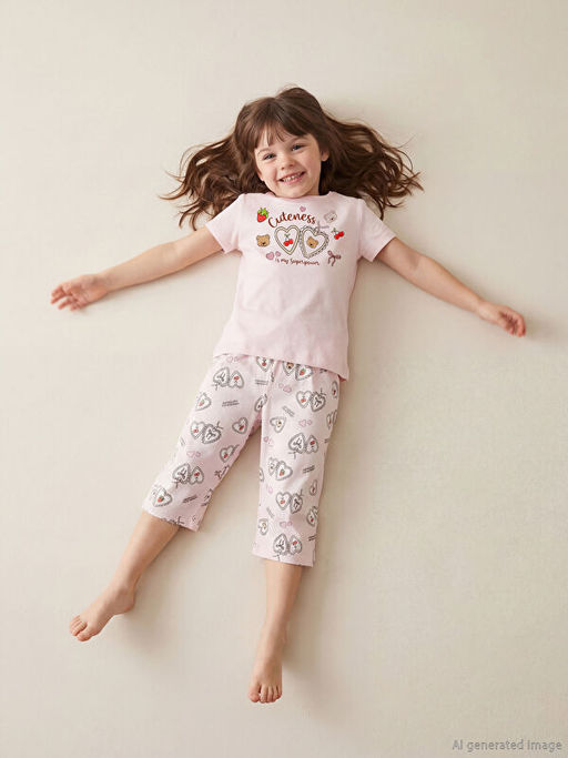 • Bask?l? K?z ?ocuk Kaprili Pijama Tak?m?