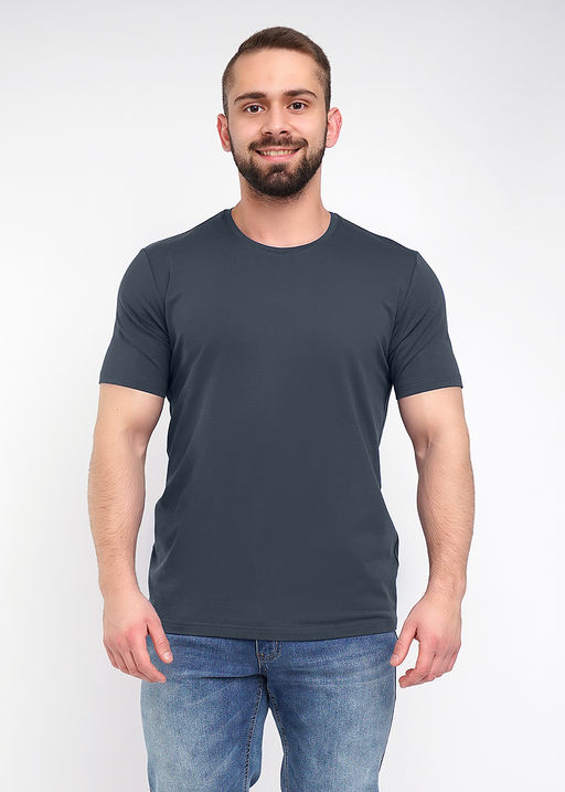Фуфайка базовой посадки, круглый вырез горловины, короткий рукав. 92% хлопок, 8% эластан. Плотность 180-190г/м2